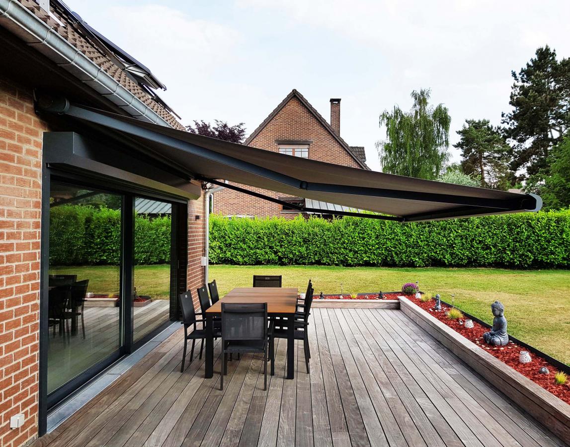 Grâce à Somfy, vous pouvez aisément ouvrir et fermer vos stores bannes à l'aide d'une télécommande. Vous pouvez aussi les positionner comme vous le souhaitez en quelques secondes seulement. La toile est d'ailleurs toujours parfaitement tendue, pour une journée parfaite sur votre terrasse.
